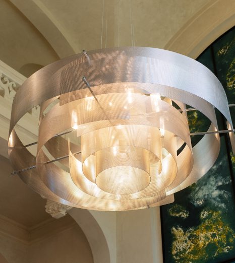 La suspension Atome, une exploration de la matière lumineuse à l’état suspendu.