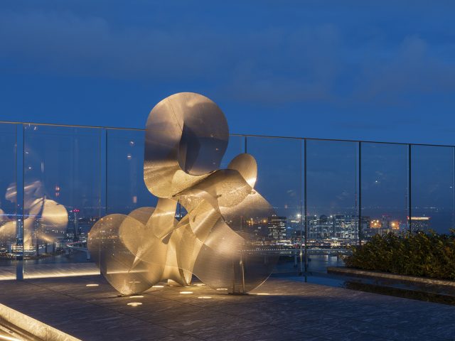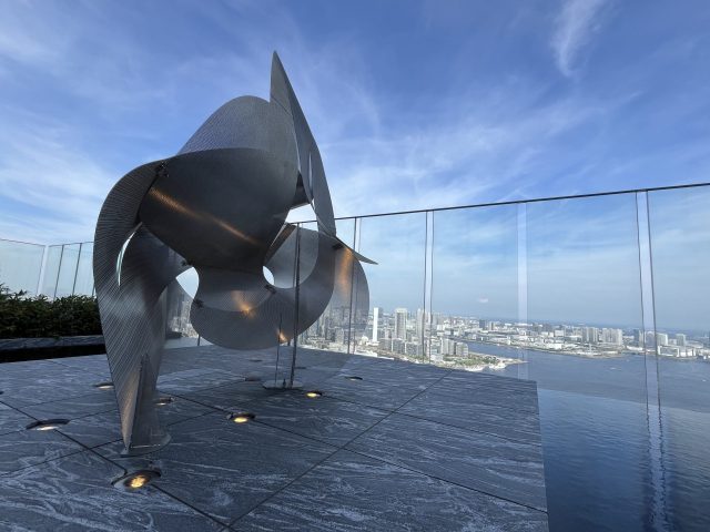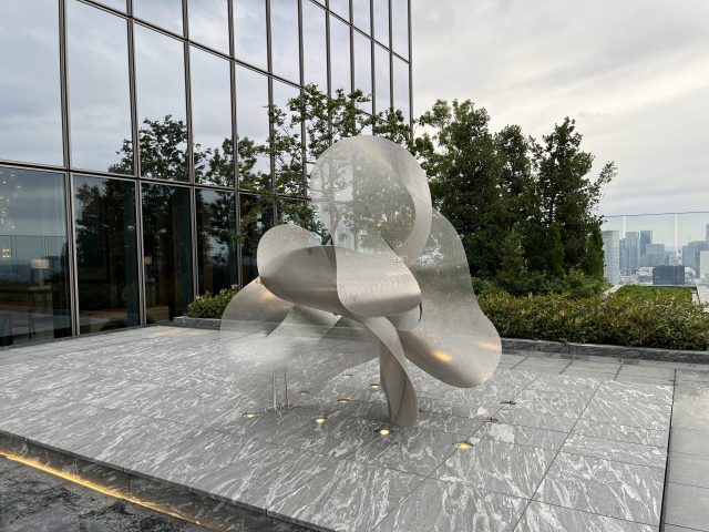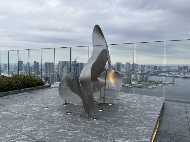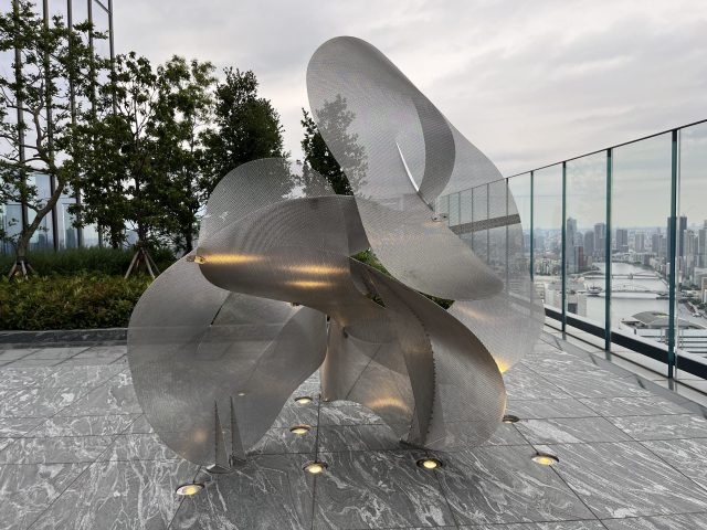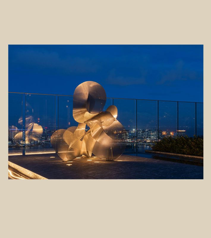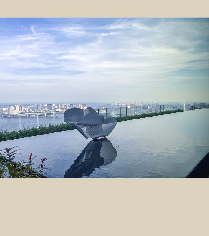 Nous sommes fiers d’avoir réalisé une œuvre sculpturale majeure au Japon, installée sur la Terrasse d’un hôtel de luxe avec vue imprenable sur Tokyo. Haute de 2,50 mètres, cette sculpture, faite de courbes entrelacées, dialogue avec l’architecture et le paysage urbain. Elle incarne parfaitement notre capacité à allier expression artistique, technicité et exigence du luxe contemporain.